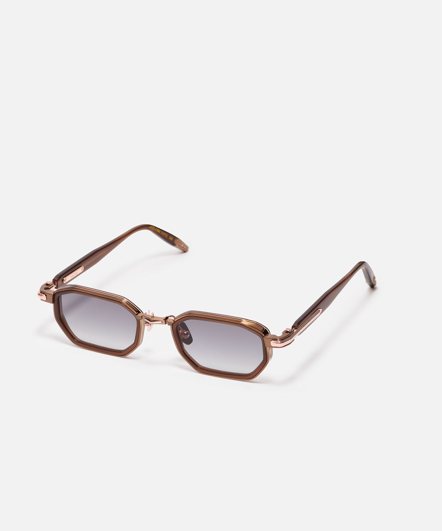 Het montuur is gemaakt van titanium met 18 karaat rose goud.